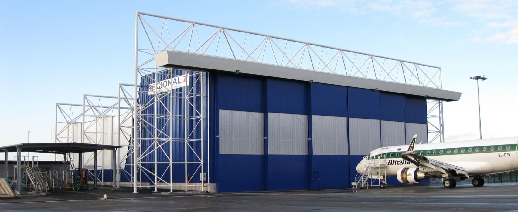 une grande largeur libre pour le passage des ailes des avions et une grande hauteur pour loger leur empennage.